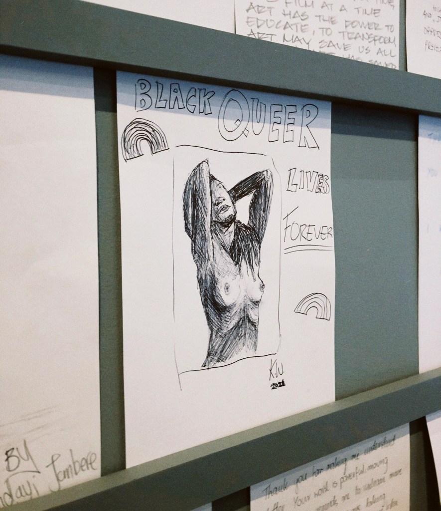 As we walked further through the exhibition we reached a section of survivor portraits. I gazed through each photograph and I couldn’t help but feel their pain. Tears filled my eyes looking into theirs and understanding the struggle to live in your body after someone has violated it. Life naturally continues but you are forever changed, left with internal scars that don’t show to the naked eye. On a wall-sized chalkboard different personal narratives had been written out by the artist. Each one gives a small insight to the story that lies behind. “I was raped by my cousin” a section on the board read. One lesbian survivor tells the story of how their cousin who was HIV positive had raped them on purpose. My heart ached at the atrocities they had to endure and beamed at the same time because of their bravery to lay their story out there for the world to see. Regardless of the atrocities they had faced Muholi’s photographs are presented to show their strength, courage and dignity in the face of ongoing discrimination.